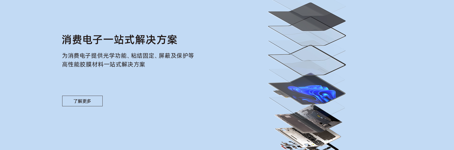 致力于為汽車制造、消費電子、智慧顯示端口等行業客戶提供包括新能源材料、電子功能材料、光電顯示材料、有機硅材料在內的產品研發、生產、銷售于一體化服務,建立了專業的市場營銷與技術服務團隊,為客戶提供高性能膠膜材料一站式解決方案。